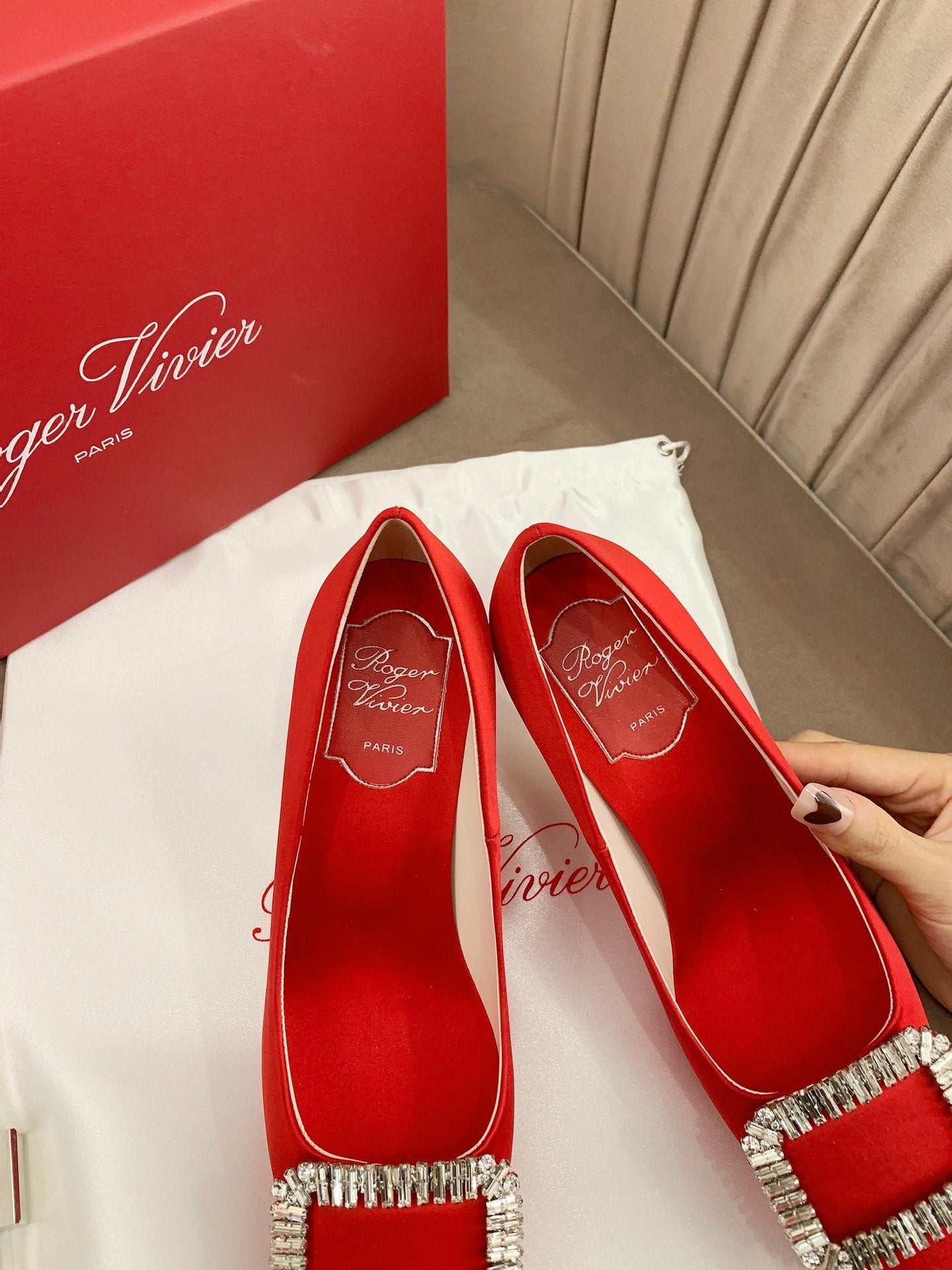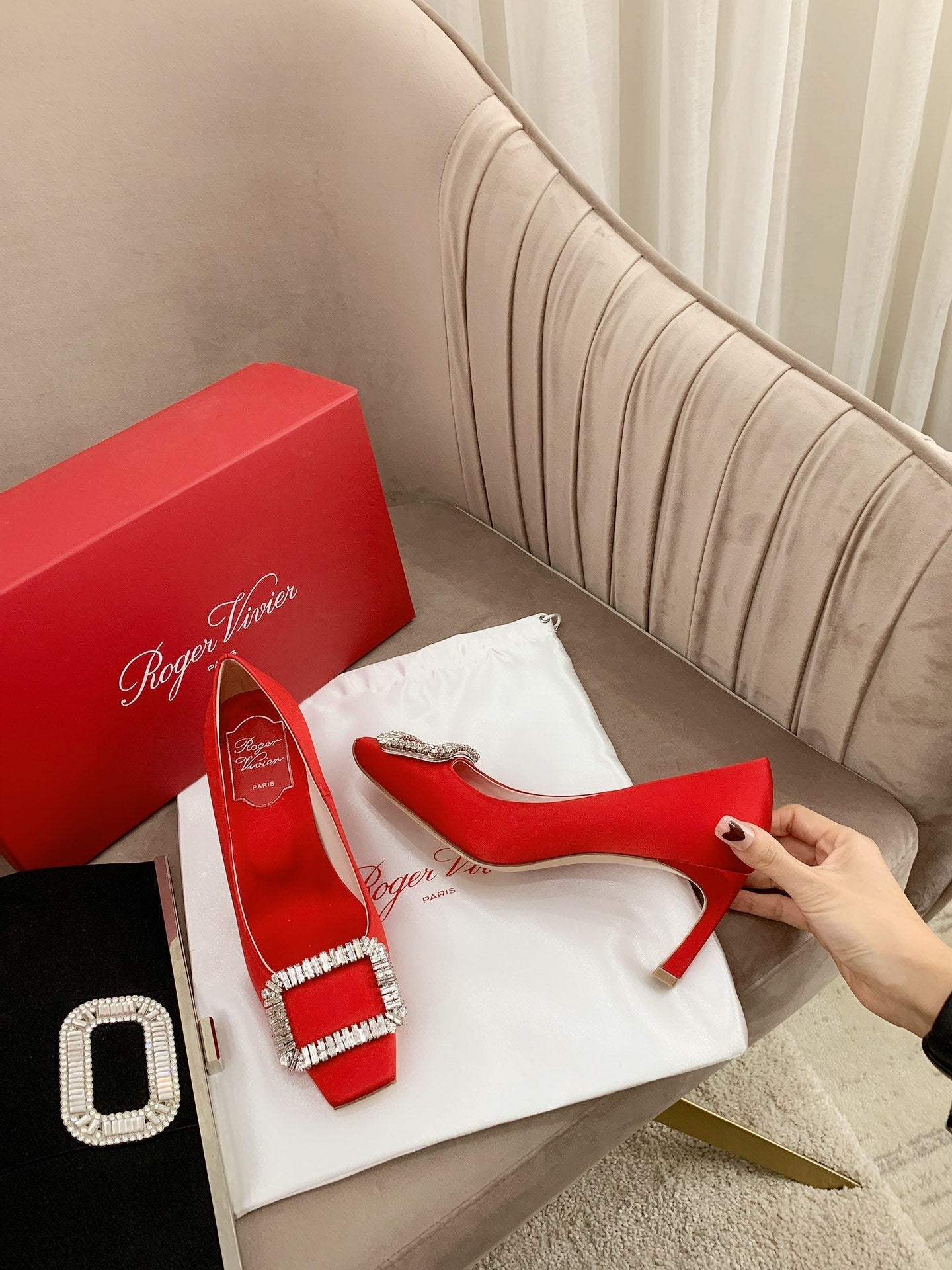 TROMPETTE PUMPS IN RED SILK CRYSTAL BUCKLE