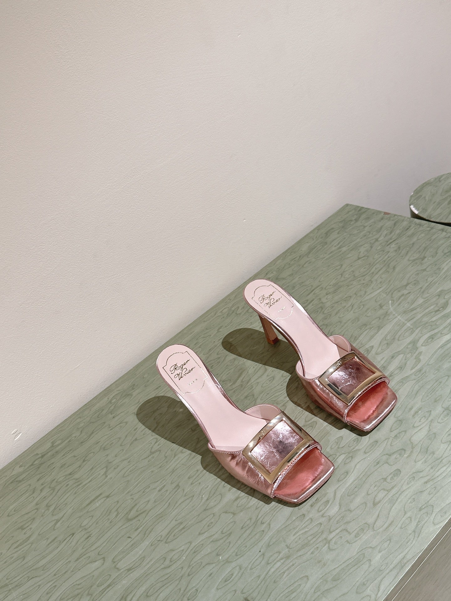 TRUMPET METALLIC MULES IN PINK PATENT CALFSKIN