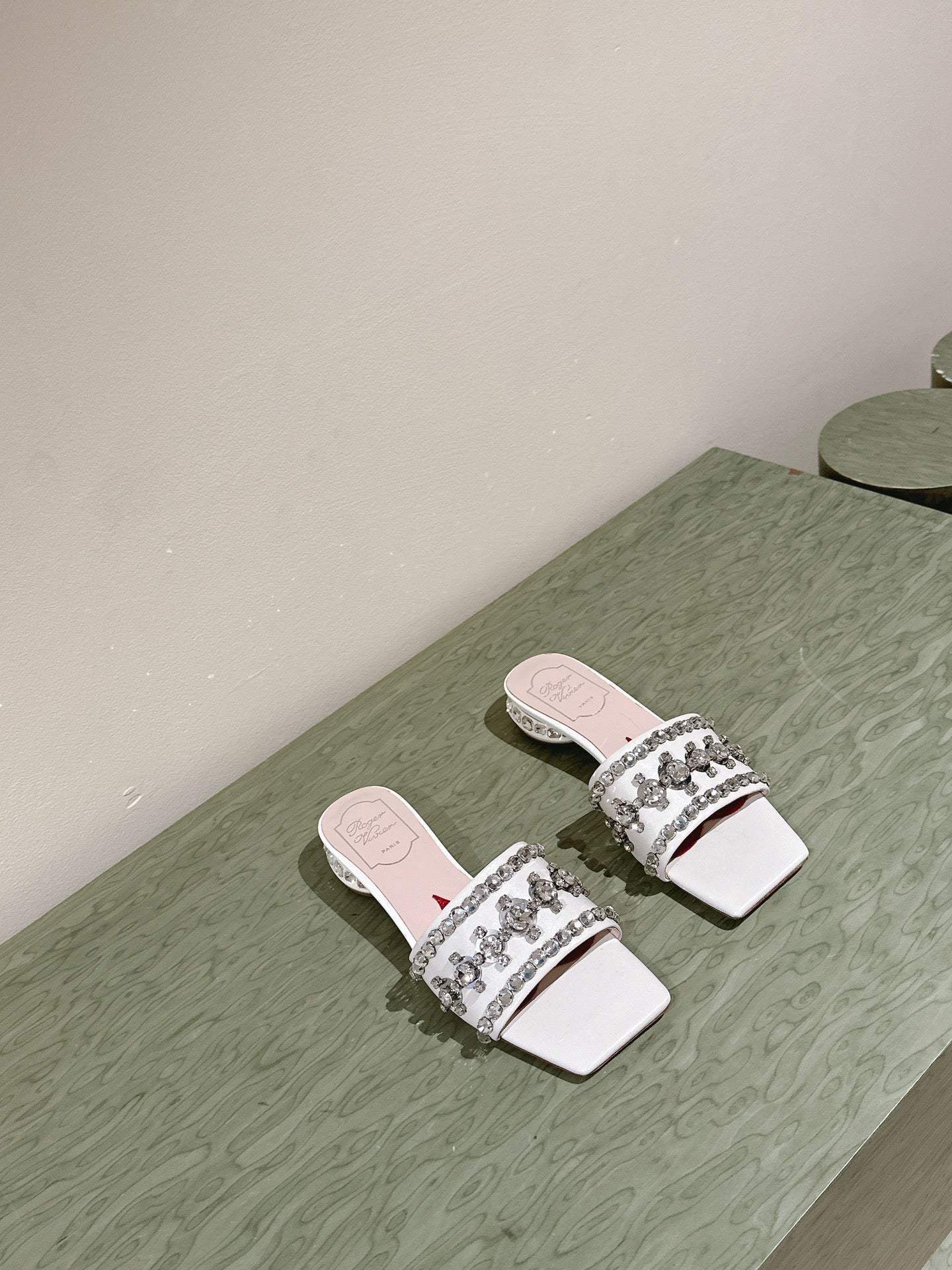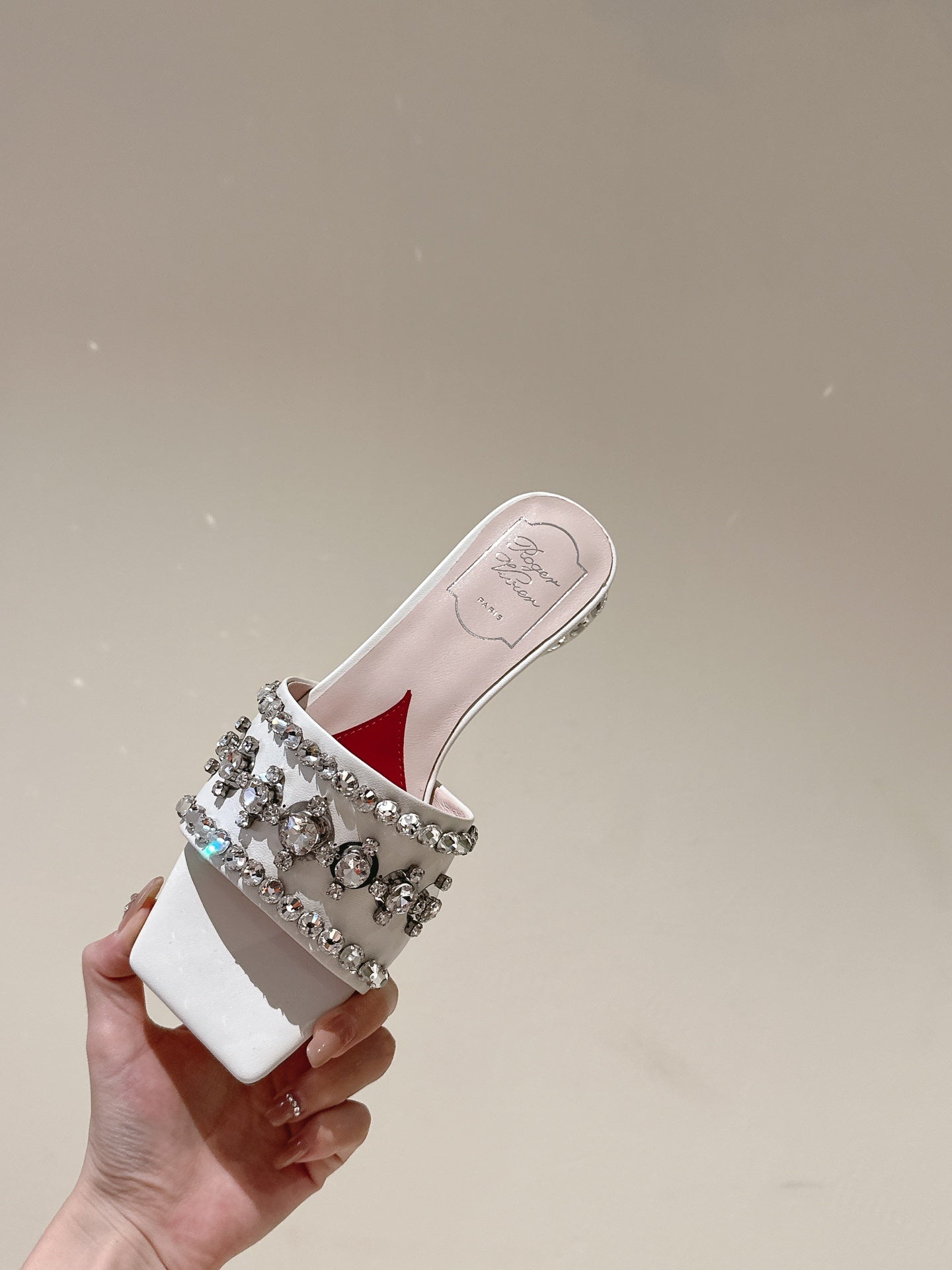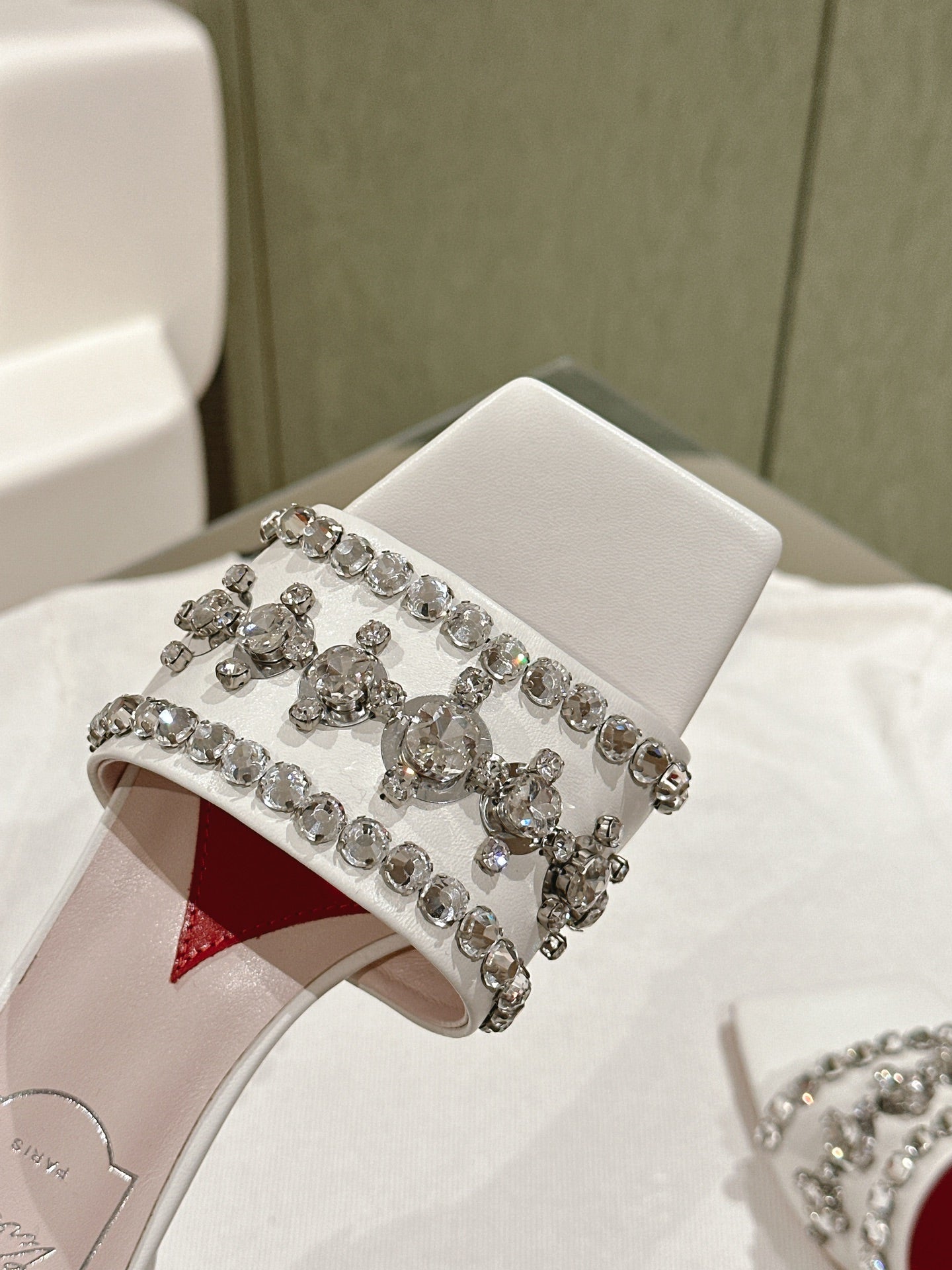 TRUMPET METALLIC MULES IN WHITE SMOOTH CALFSKIN WITH EMBELLISHED BUCKLE