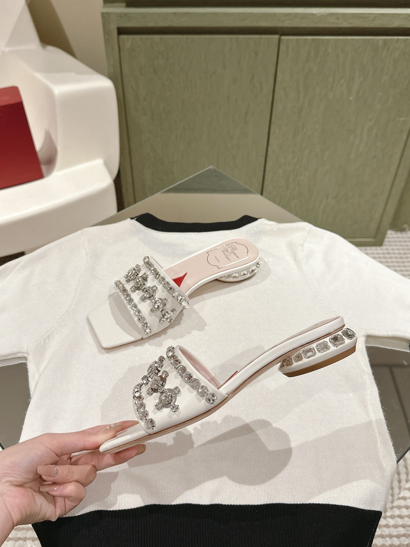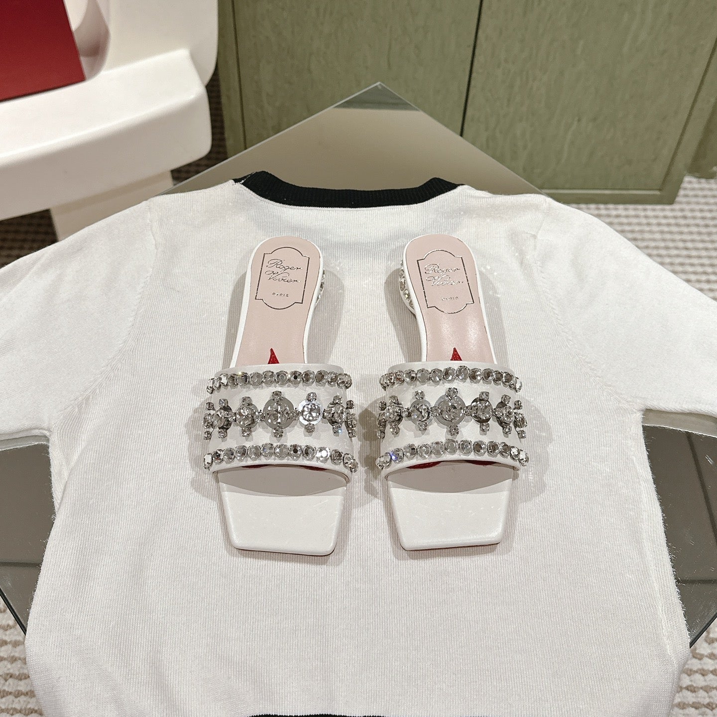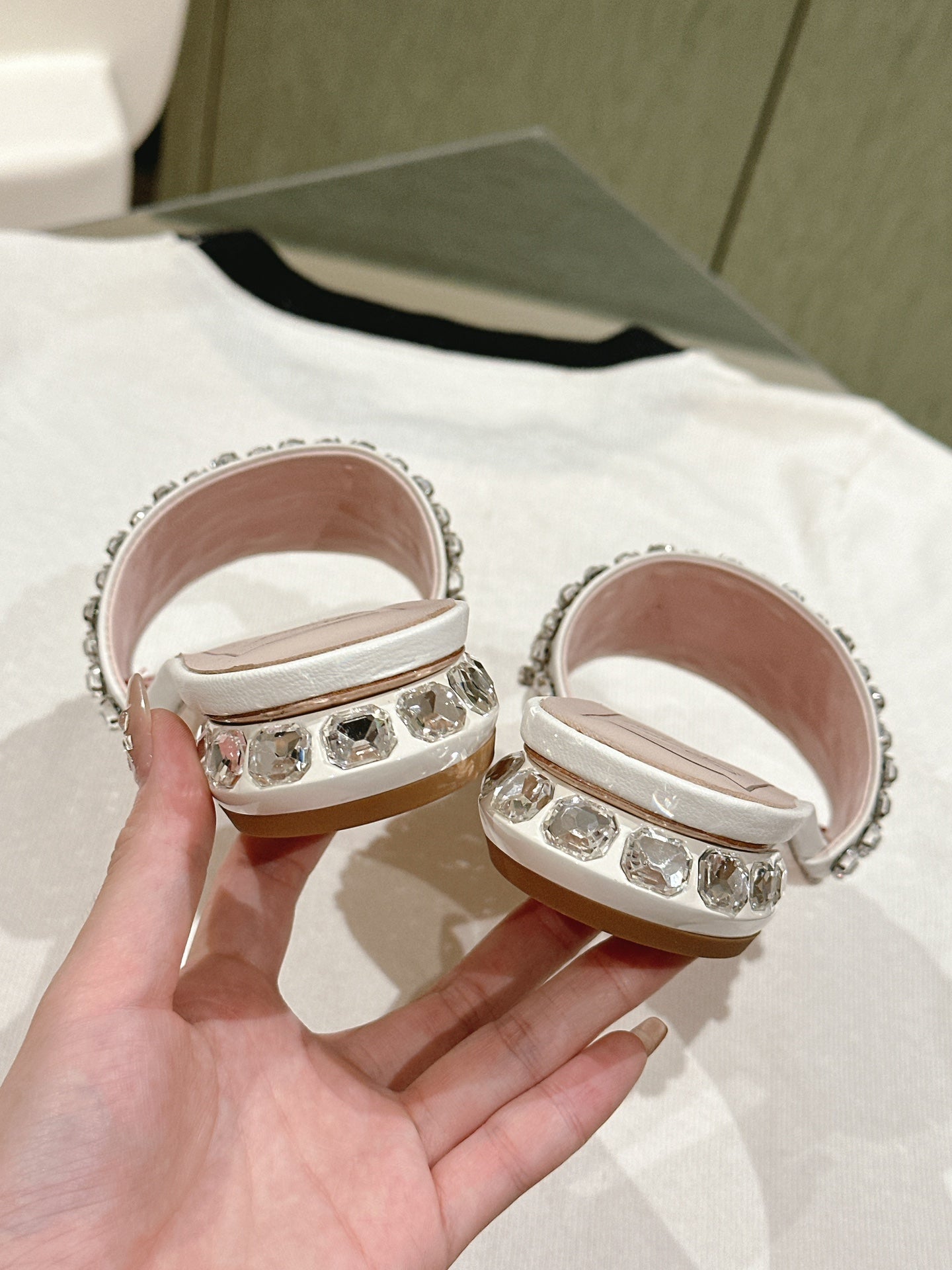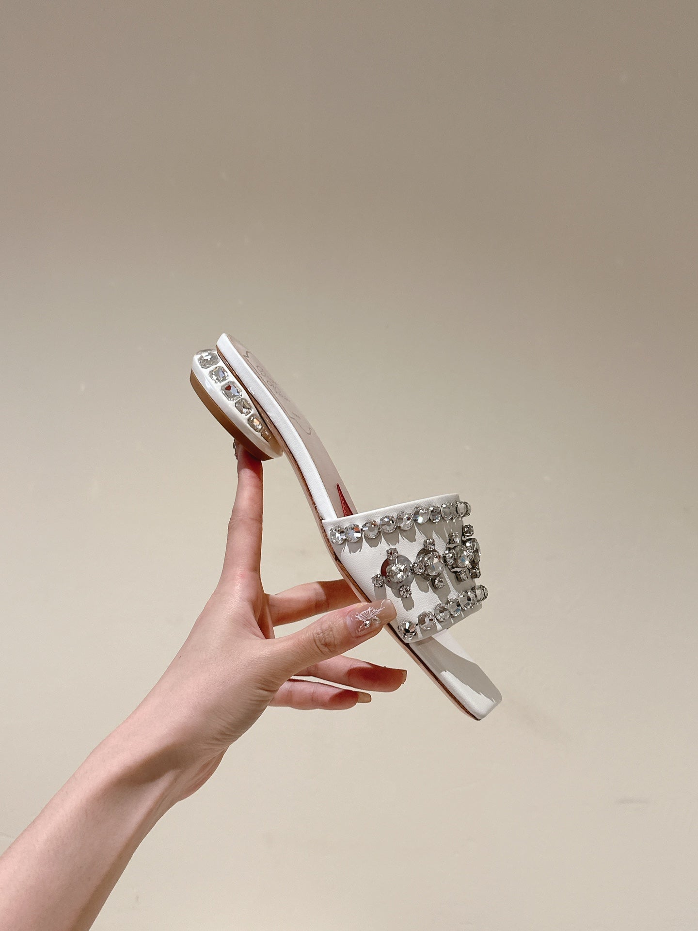 TRUMPET METALLIC MULES IN WHITE SMOOTH CALFSKIN WITH EMBELLISHED BUCKLE