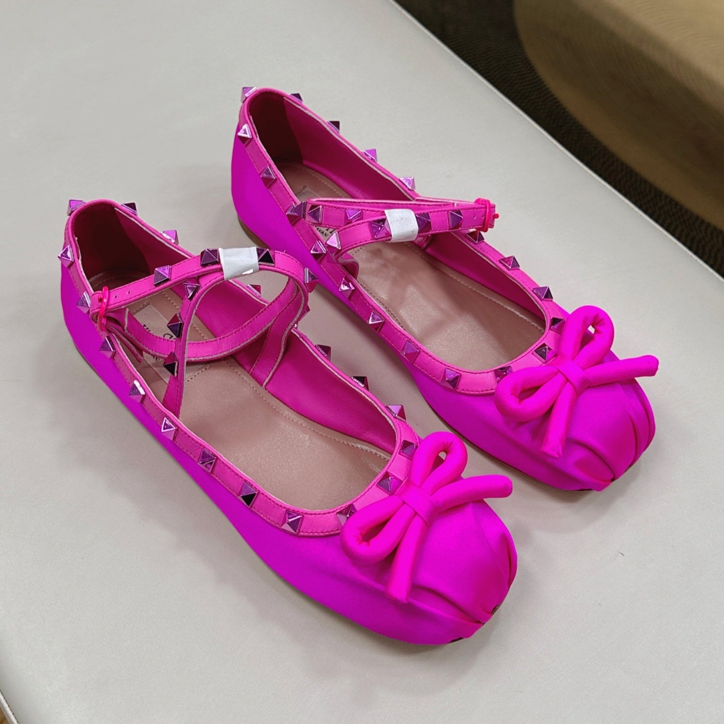 VALEN GARAVANI ROCKSTUD BALLERINAS IN BLACK SATIN