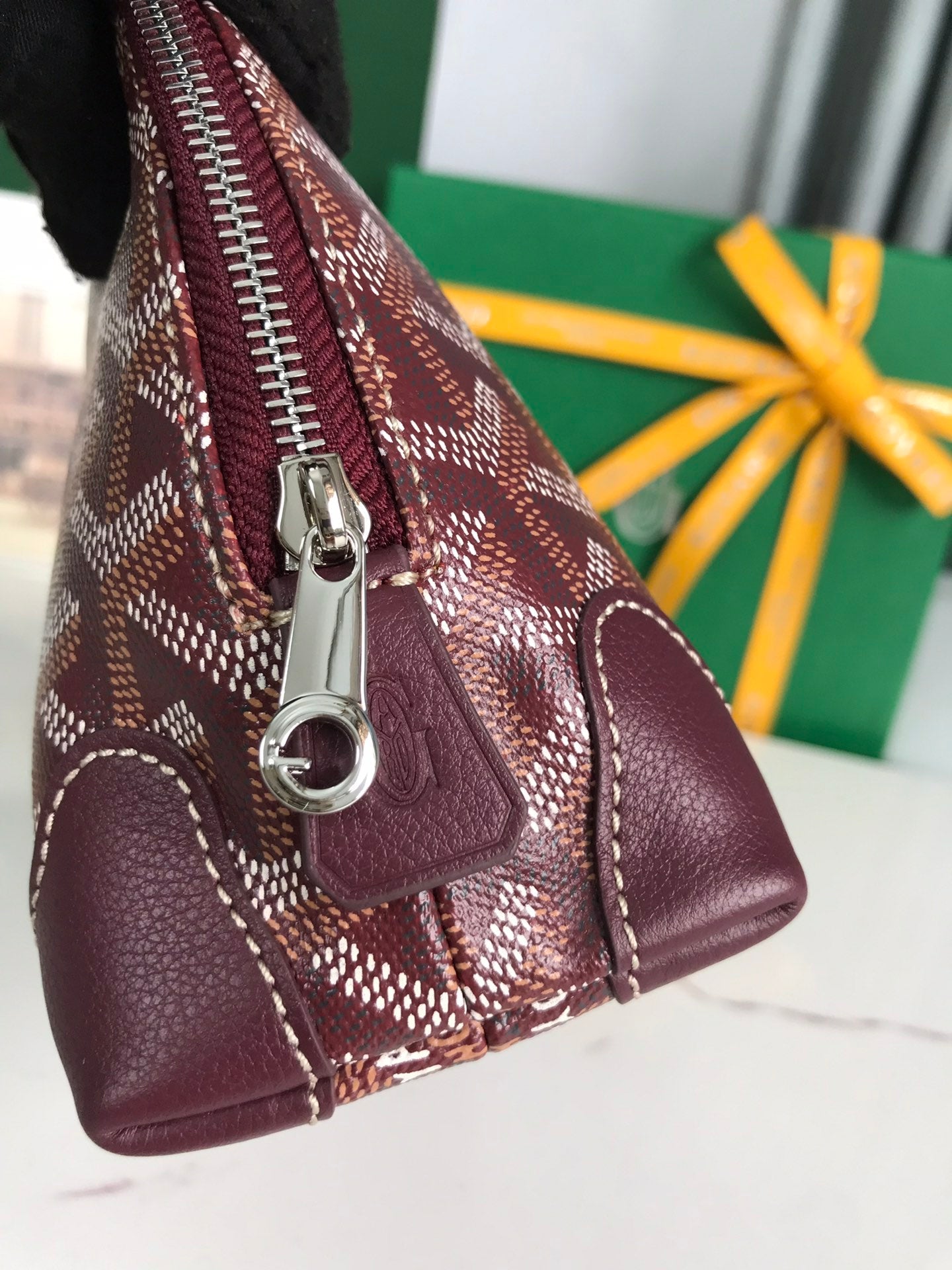 VENDÔME COSMETIC POUCH 17 IN WINE RED GOYARDINE CANVAS AND CALFSKIN TRIM
