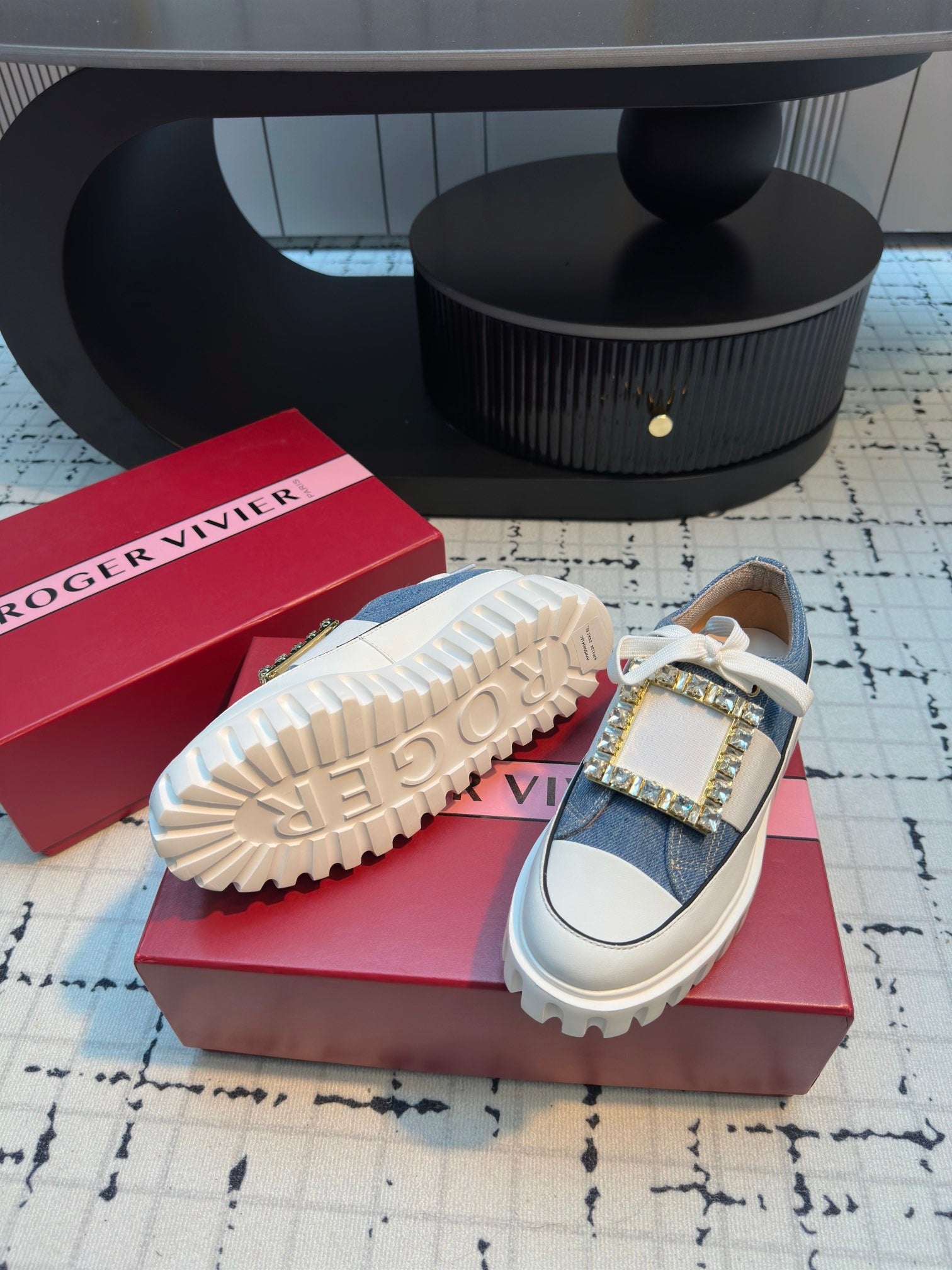 VIV' GO-THICK STRASS BUCKLE SLIP-ON SNEAKERS IN BLUE DENIM