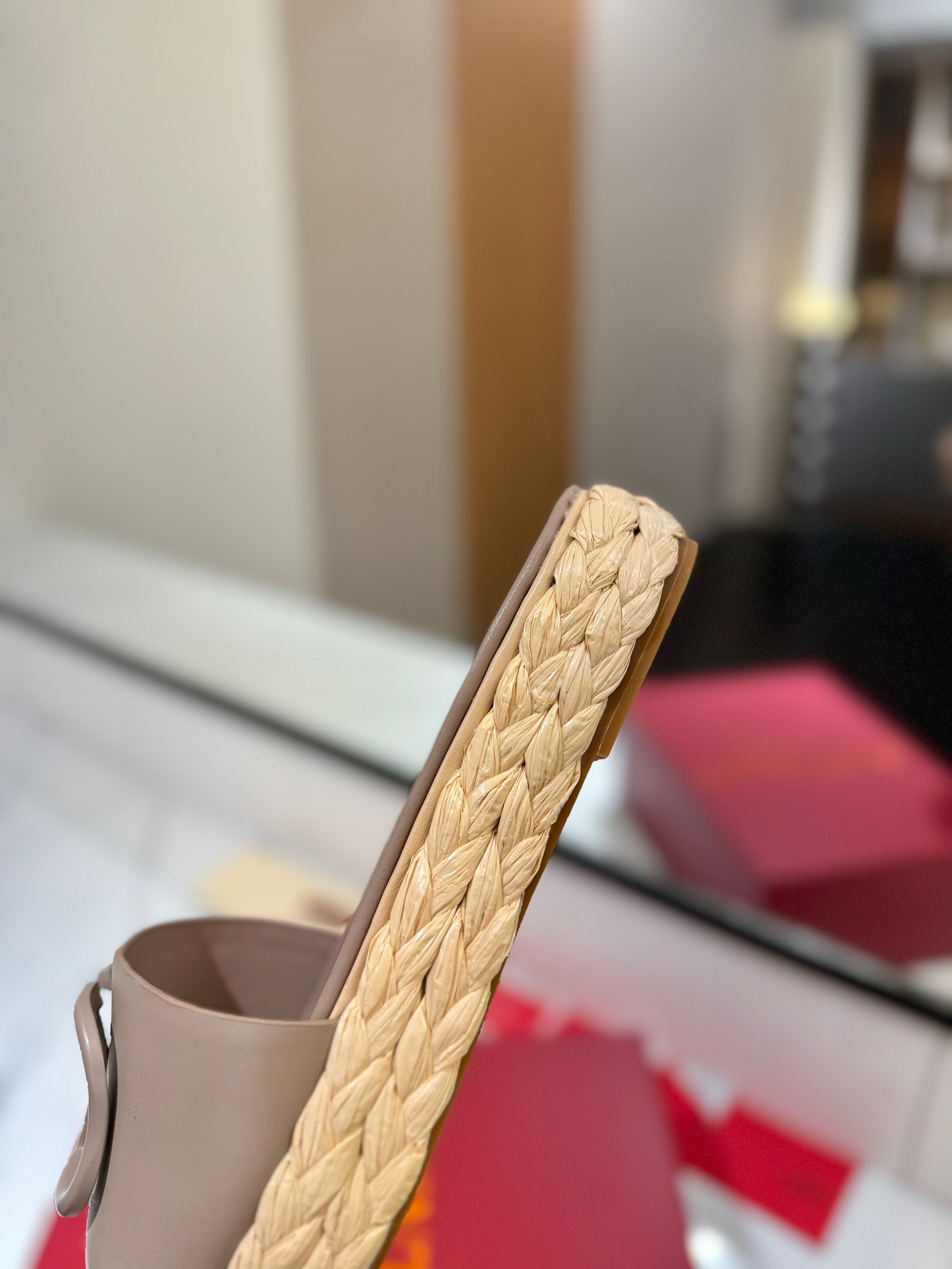 VLTN ESPADRILLE SLIDES 25S IN BEIGE BROWN LAMBSKIN STYLE 10