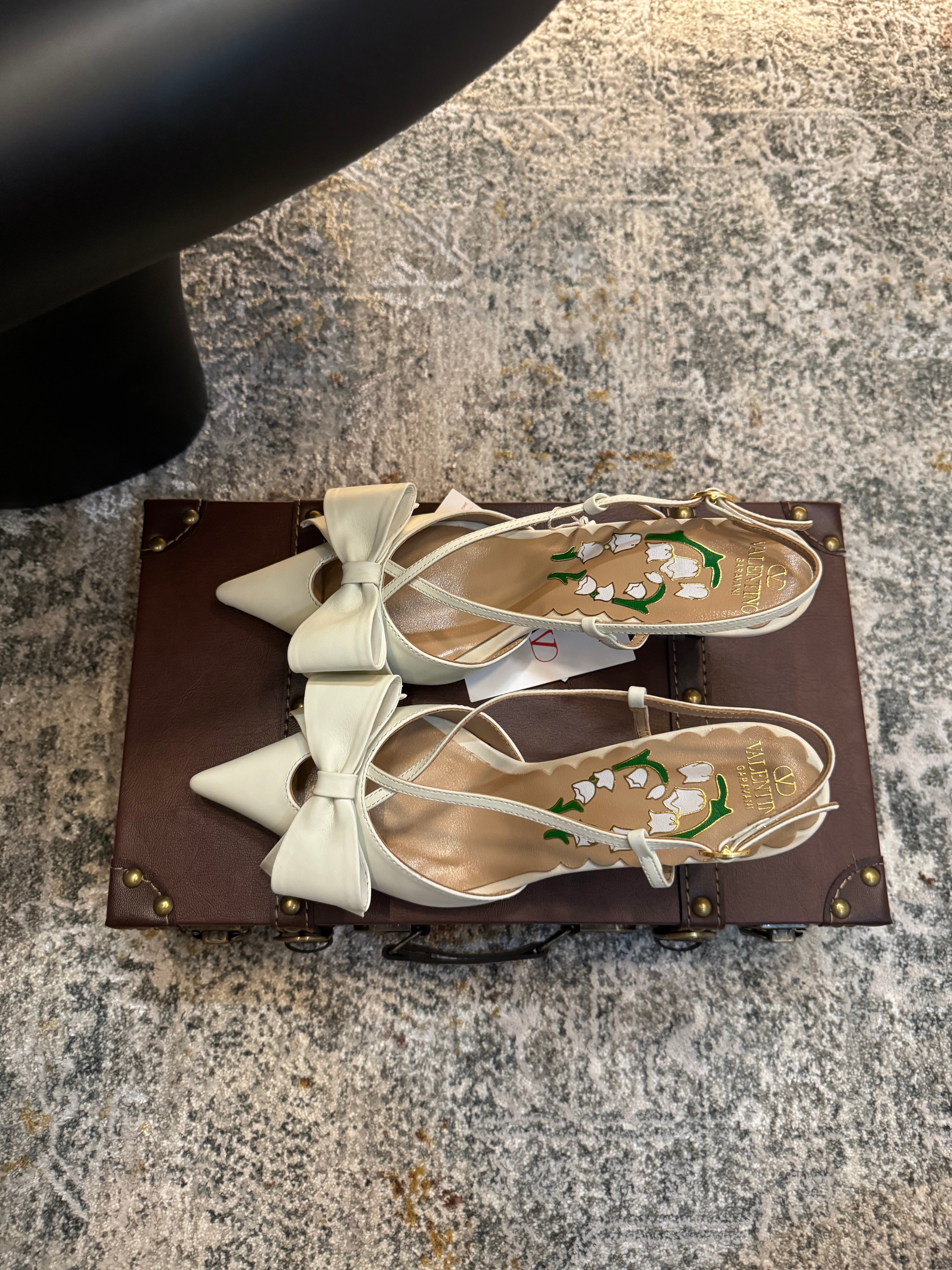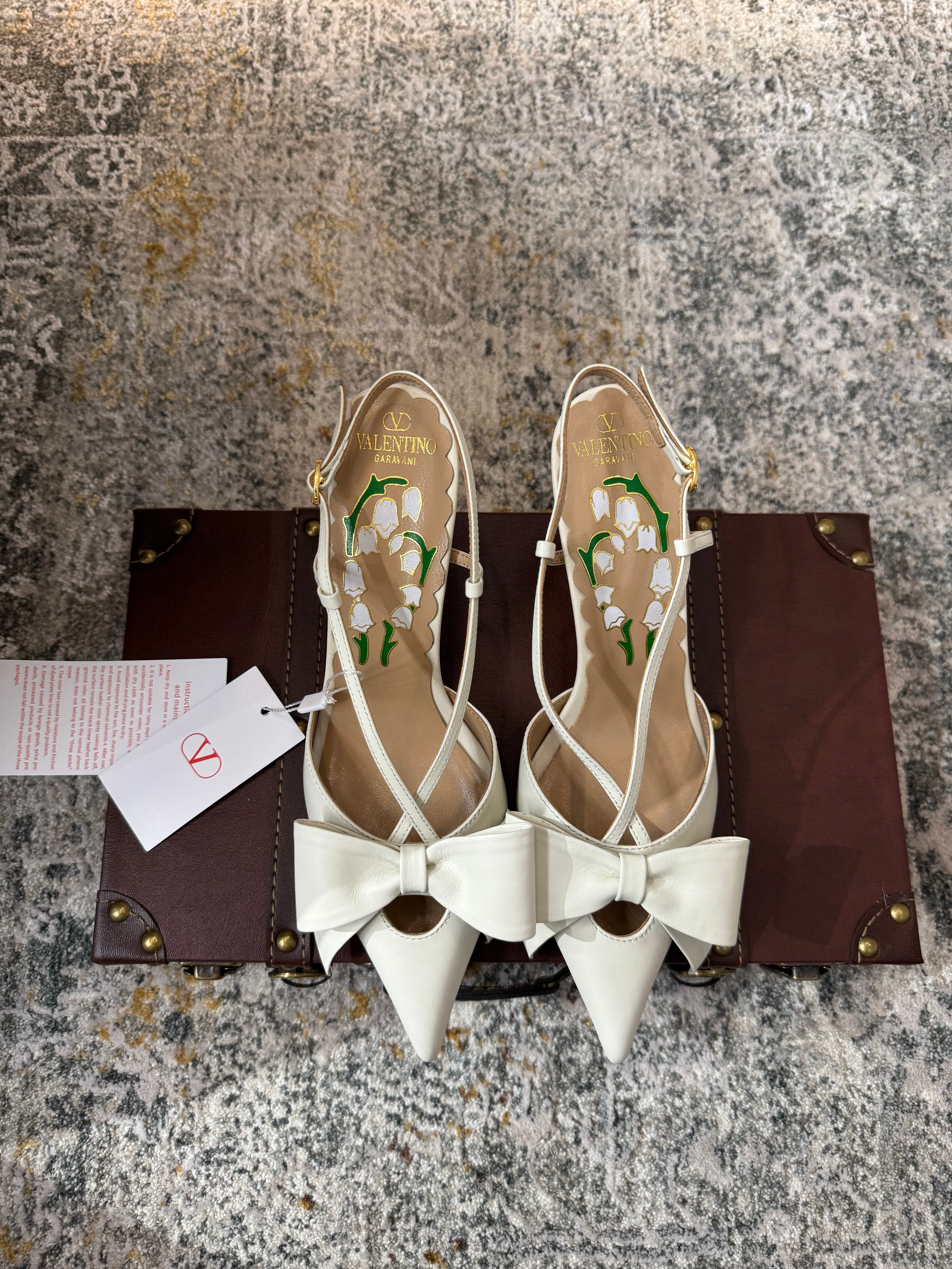 VLTN HIGH HEEL 25S 80 MM IN WHITE CALFSKIN WITH BOW