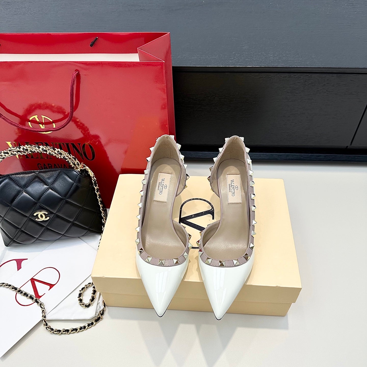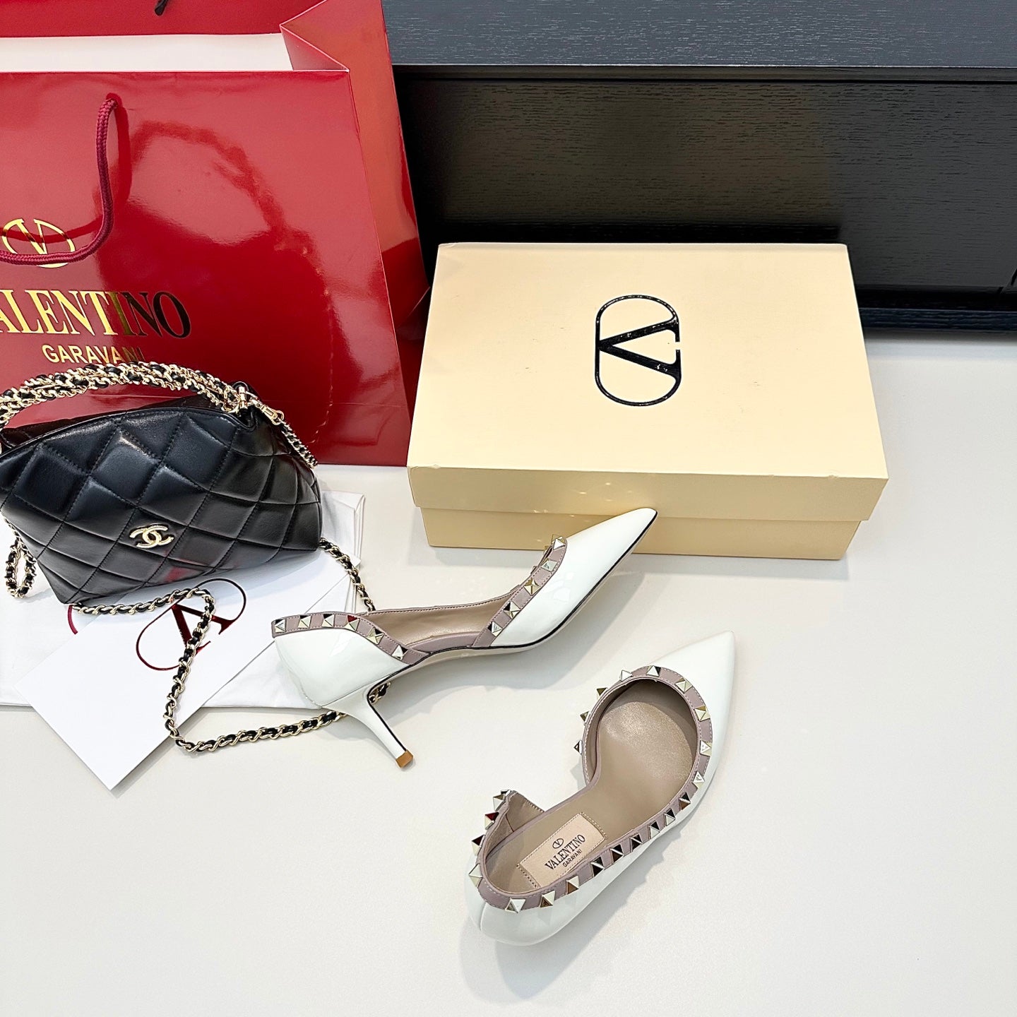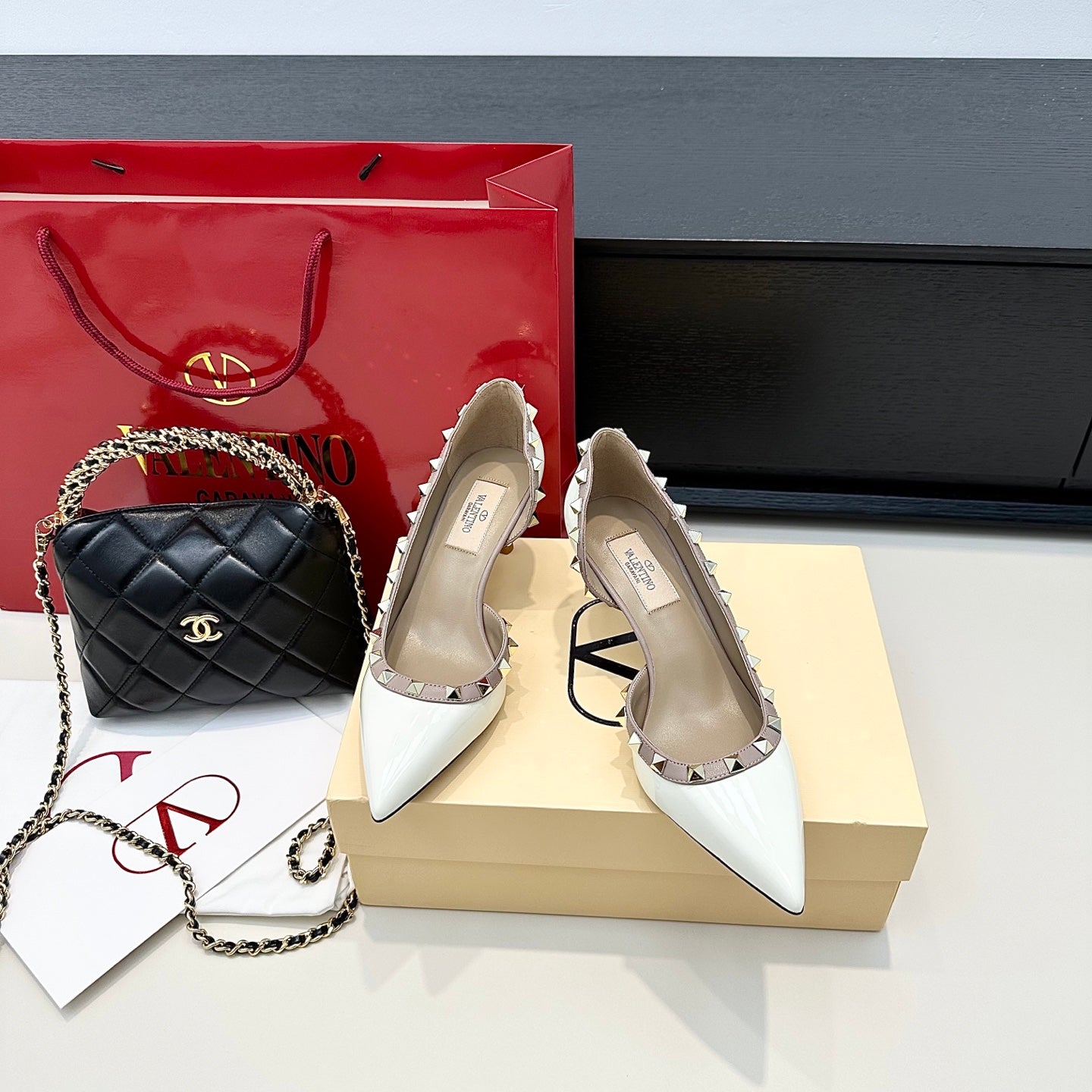 VLTN ROCKSTUD HEELS 25S 60 MM IN WHITE GLOSSY LEATHER
