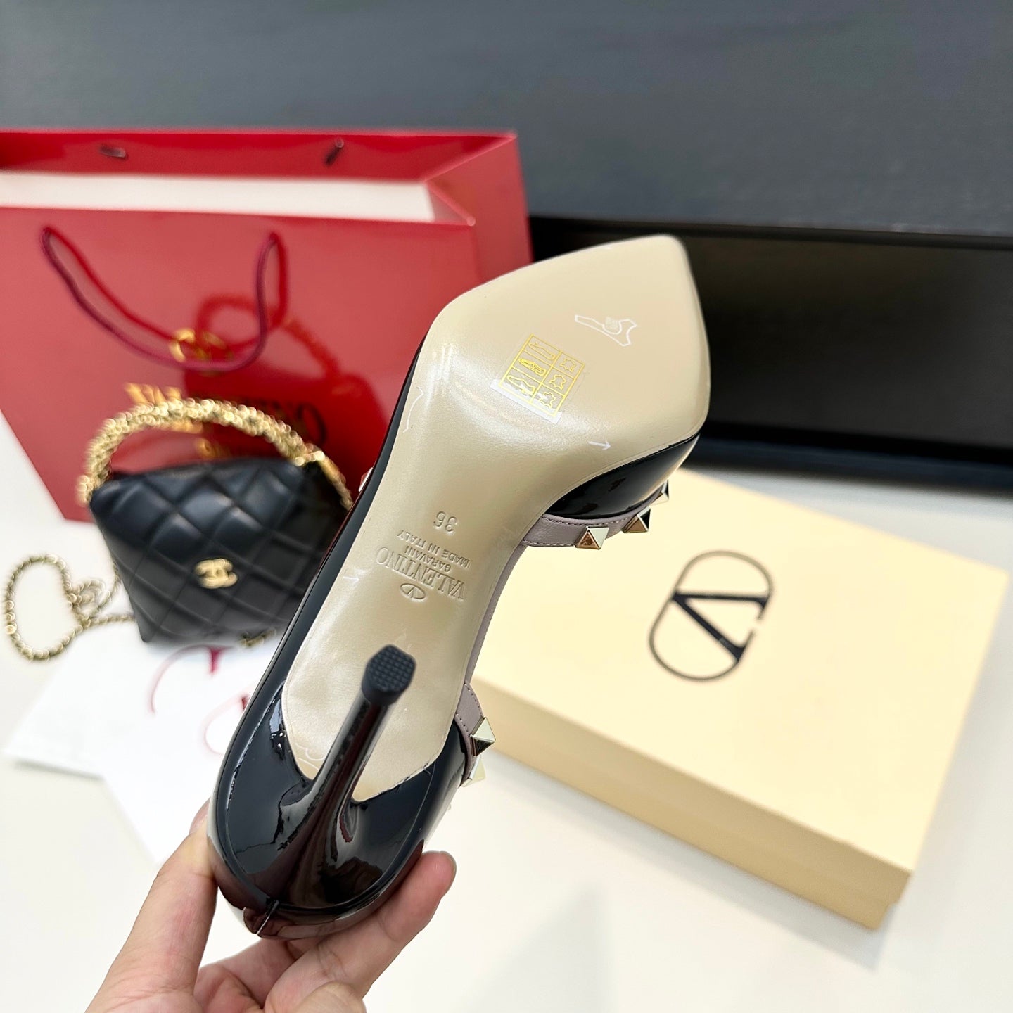 VLTN ROCKSTUD HEELS 25S 85 MM IN BLACK GLOSSY LEATHER
