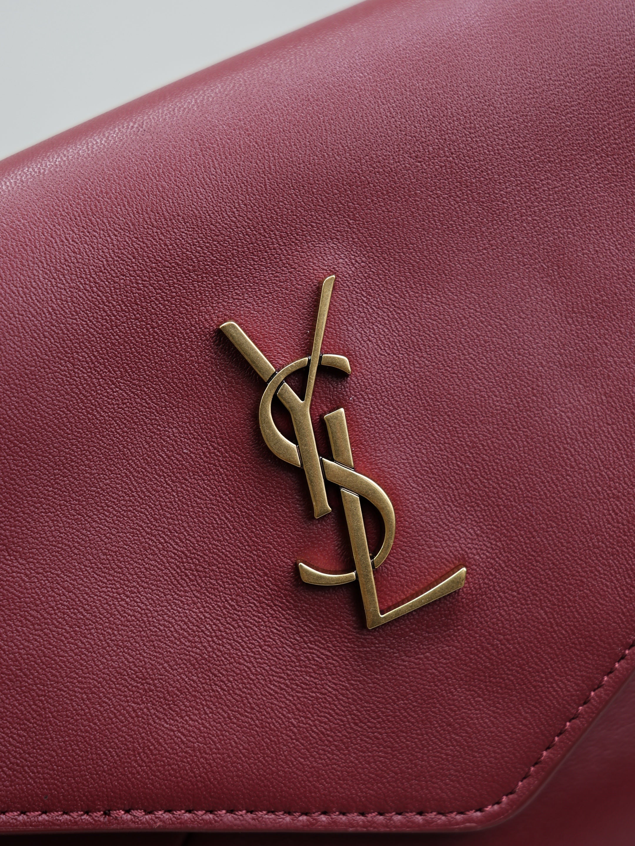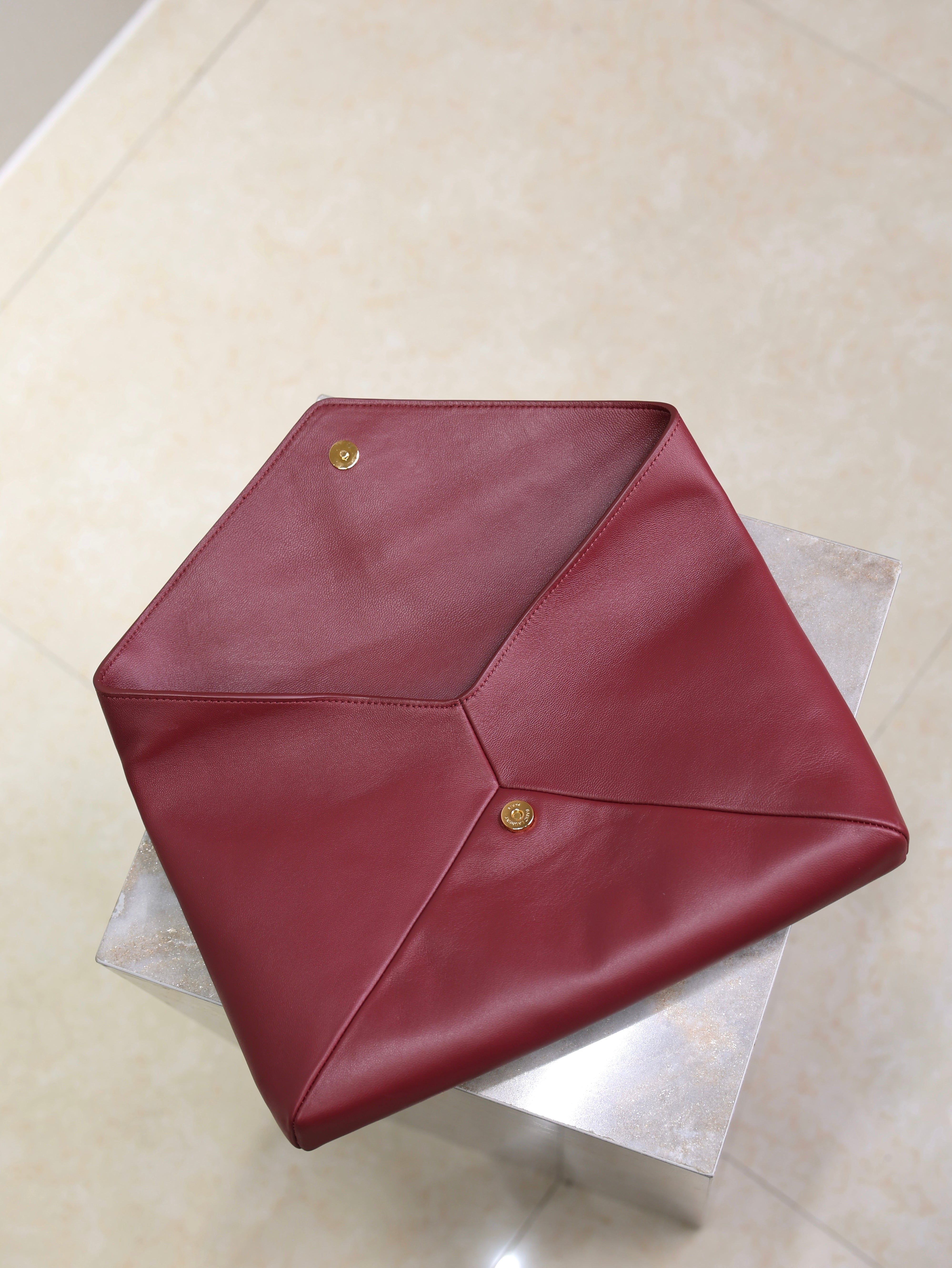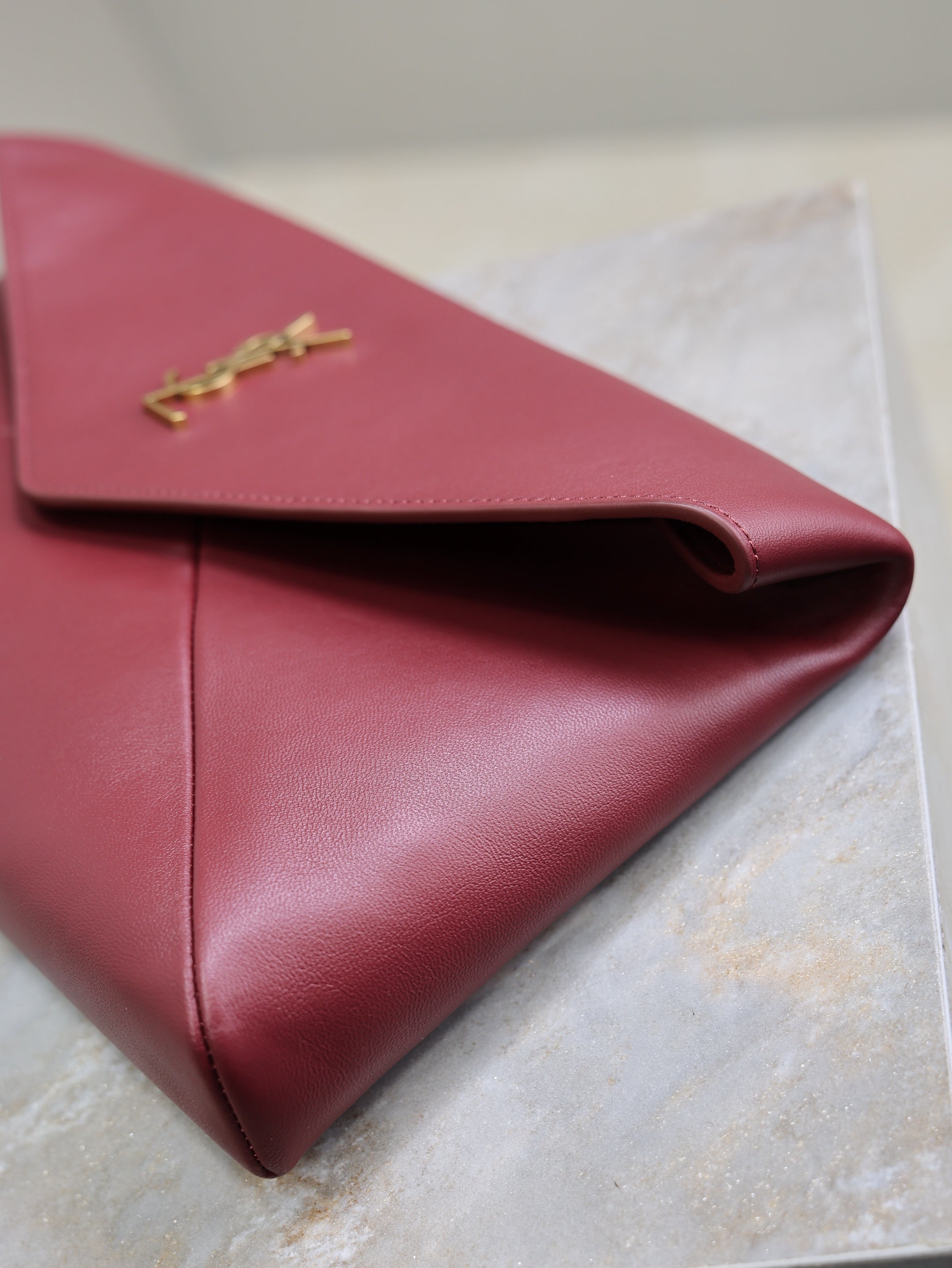 YSL 25S CASSANDRE LARGE ENVELOPE POUCH 29 IN DARK RUBY SHINY CALFSKIN GOLD HARDWRE