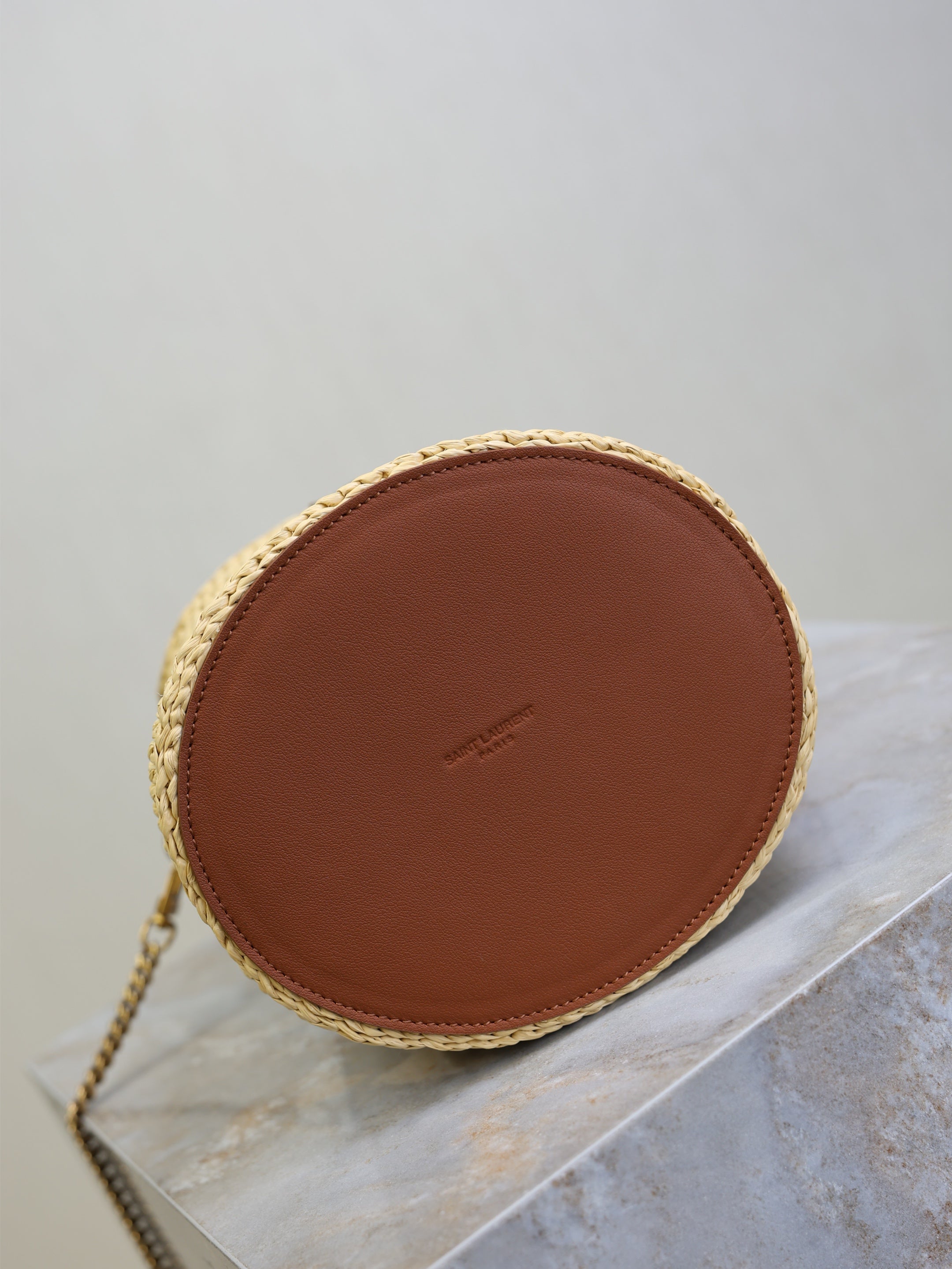 YSL 25S GABY BUCKET BAG 19 IN RAFFIA AND CALFSKIN GOLD HARDWRE