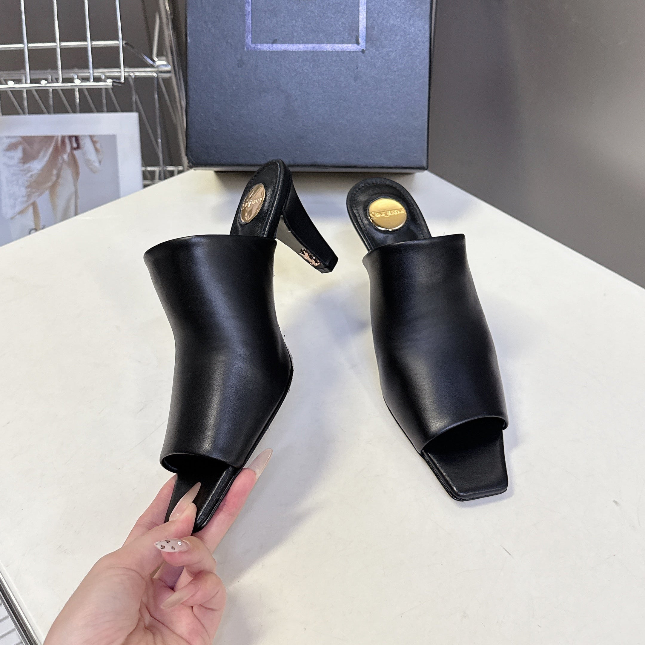 YSL 25S HIGH-HEEL SANDALS 75 MM IN BLACK LAMBSKIN