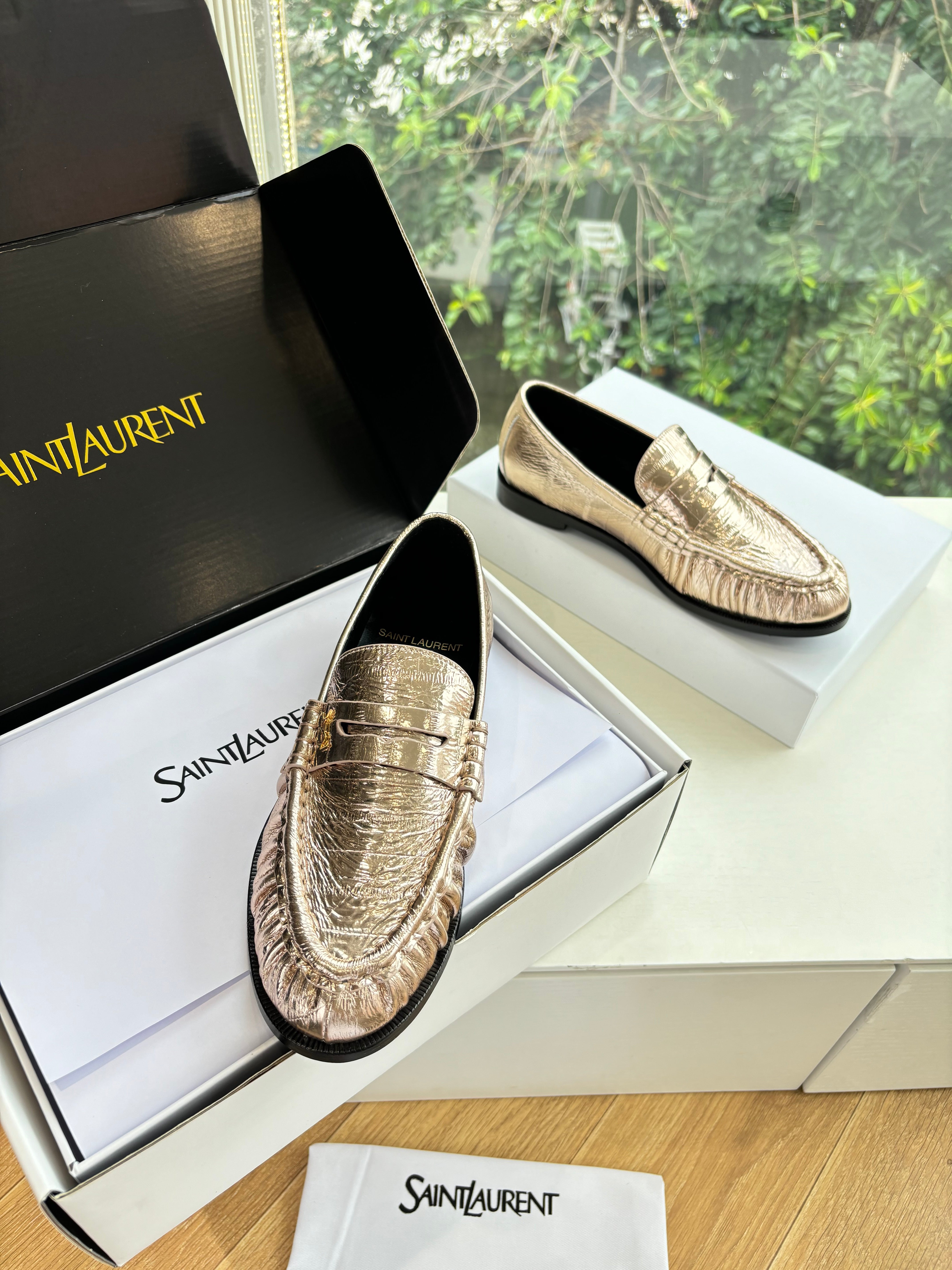 YSL 25S LOAFERS IN GOLD LAMBSKIN