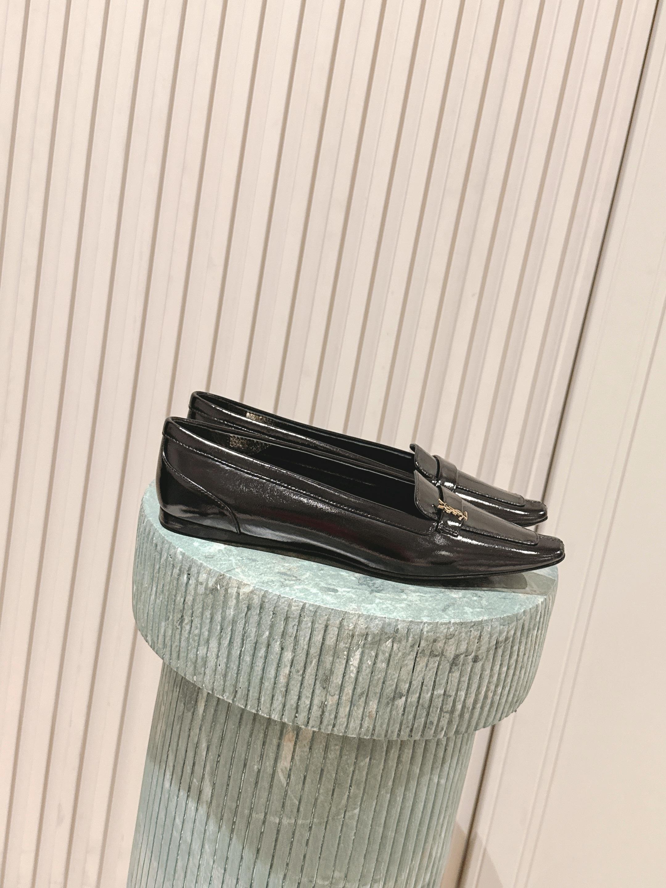 YSL 25S SAINT LAURENT POPPY BALLET FLATS IN BLACK GLOSSY CALFSKIN