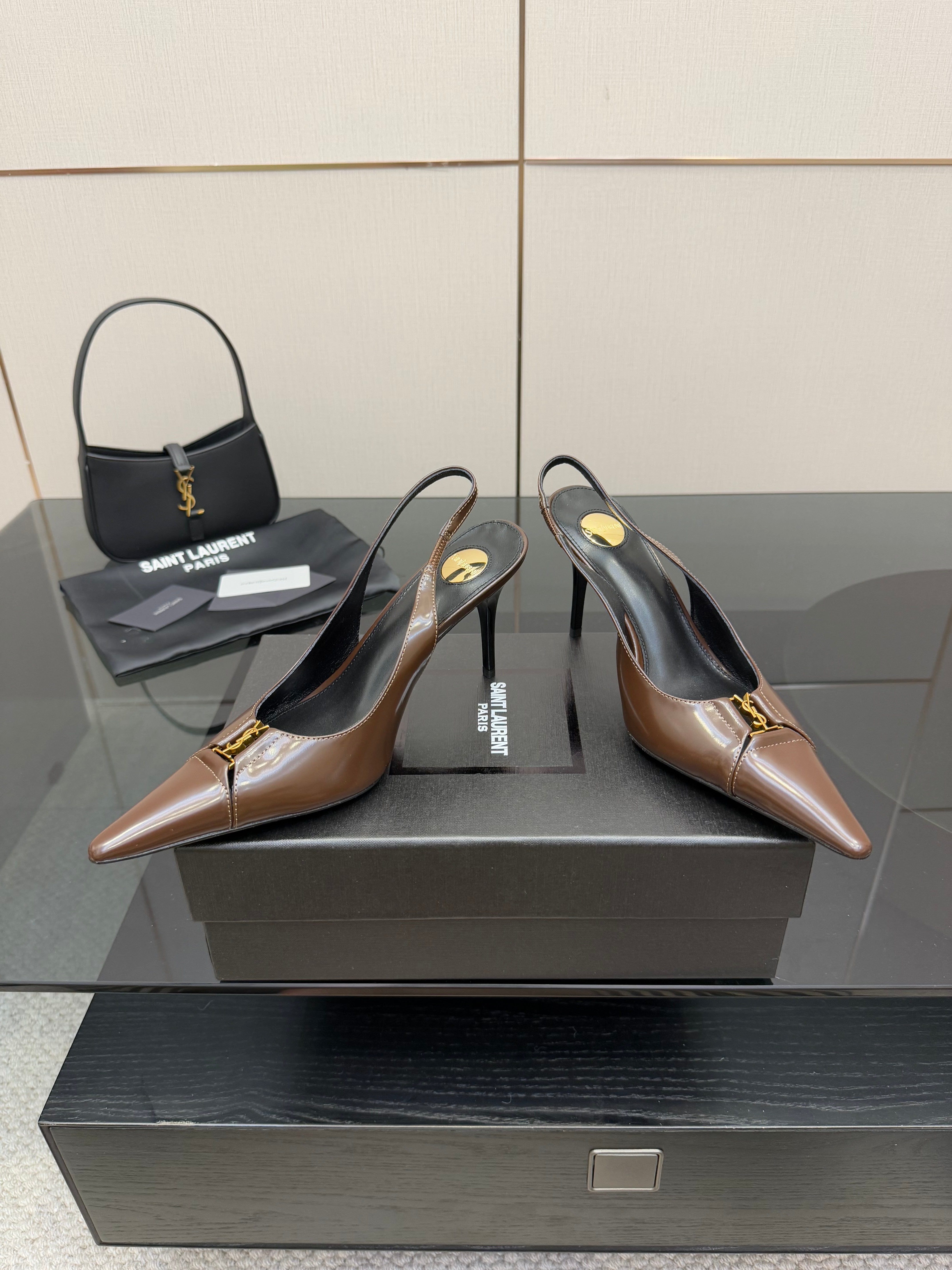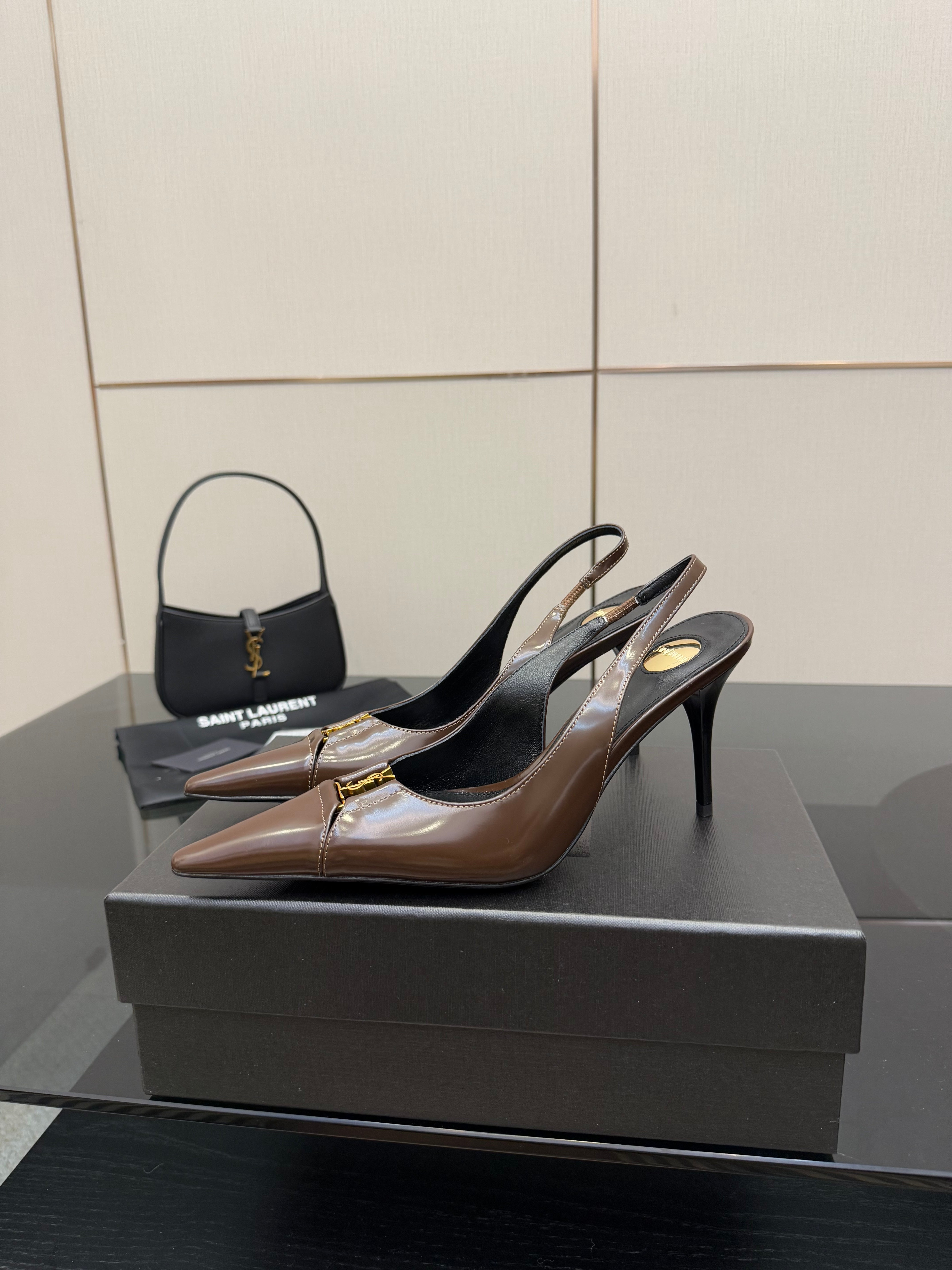 YSL 25S SLINGBACK HIGH HEELS 90 MM IN CHOCOLATE BROWN LAMBSKIN WITH GOLD HARDWARE STYLE 7