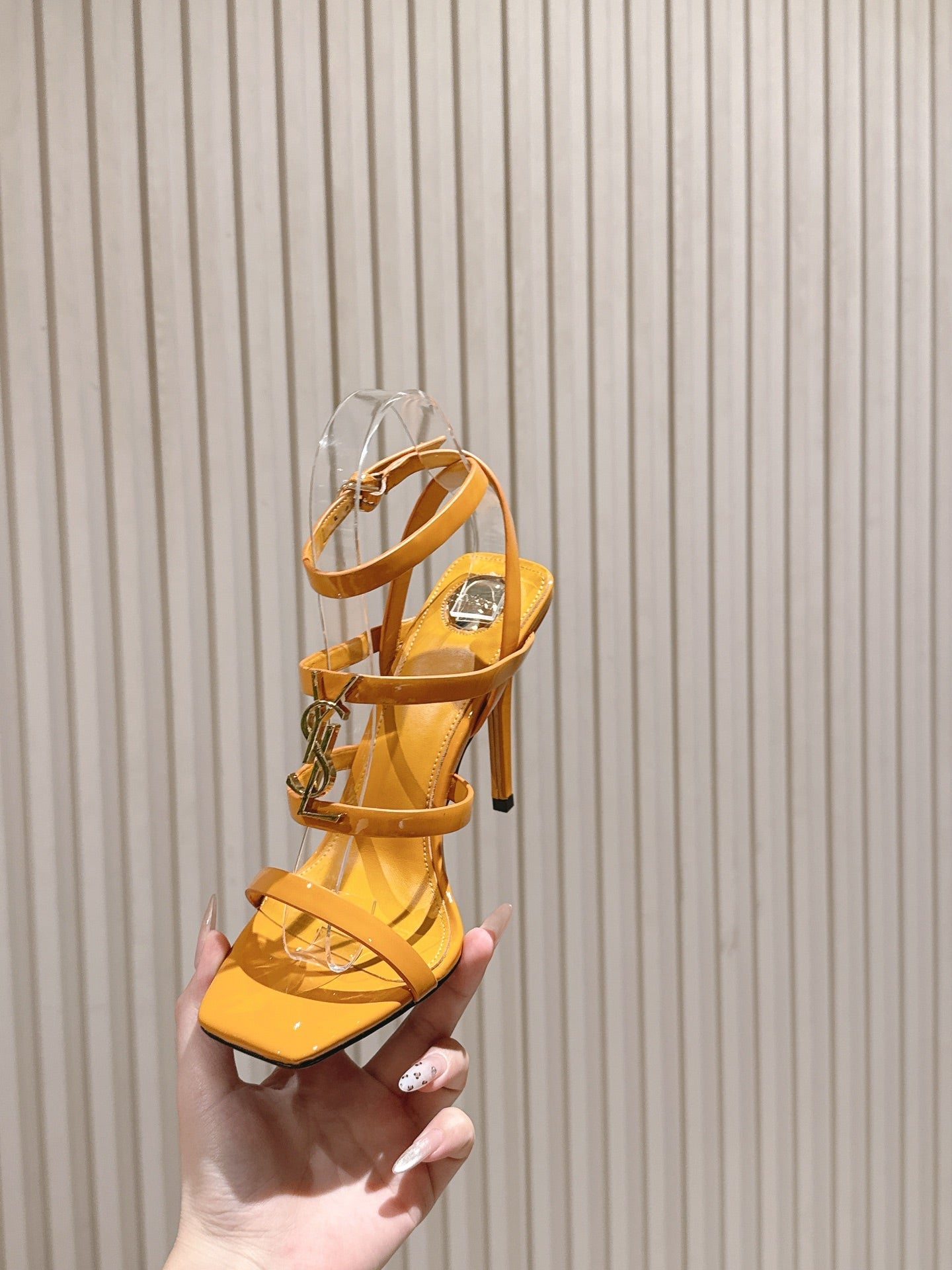 YSL 25S STILETTO HIGH-HEEL SANDALS 100 MM IN DARK ORANGE LAMBSKIN WITH GOLD HARDWARE