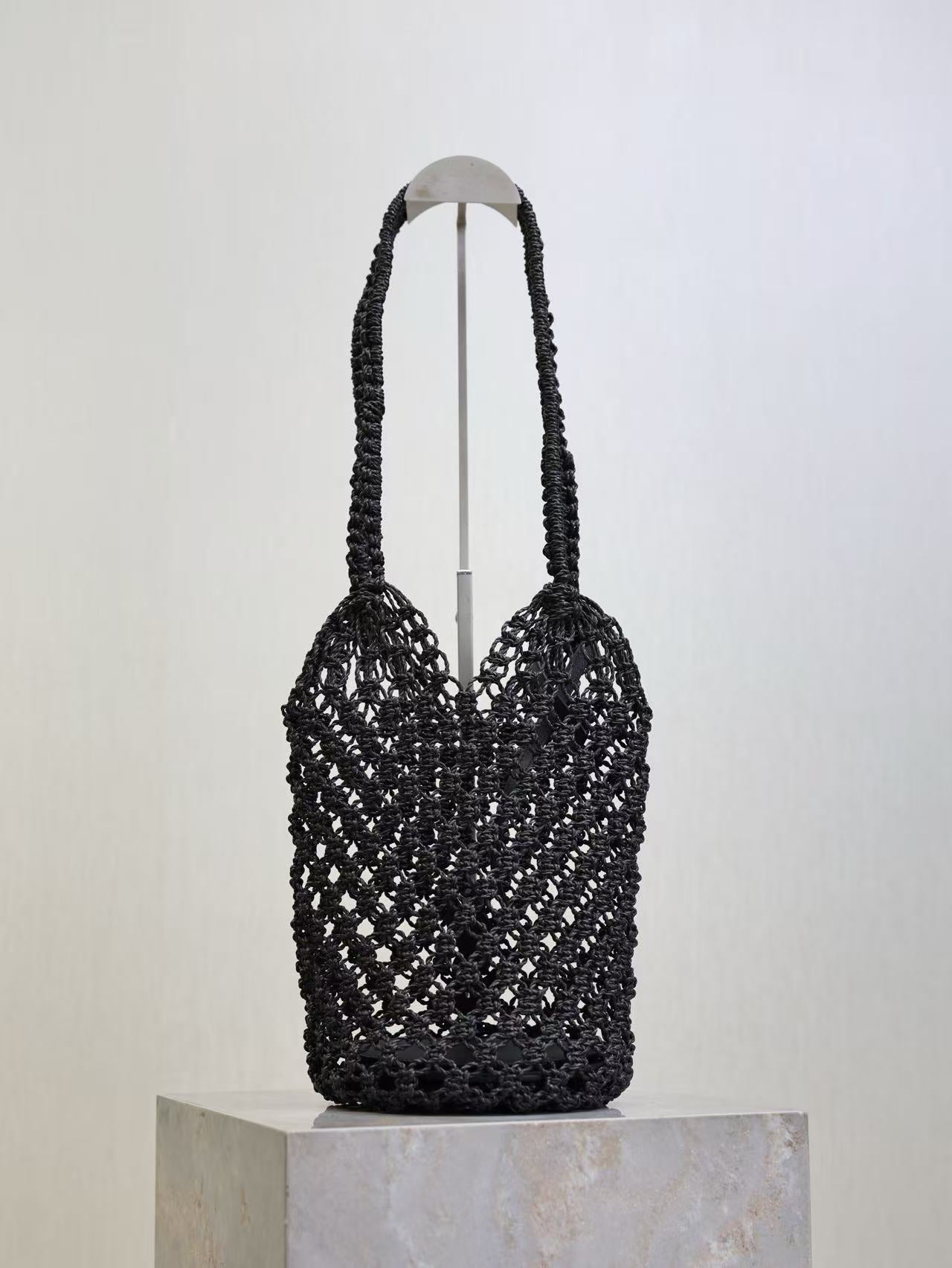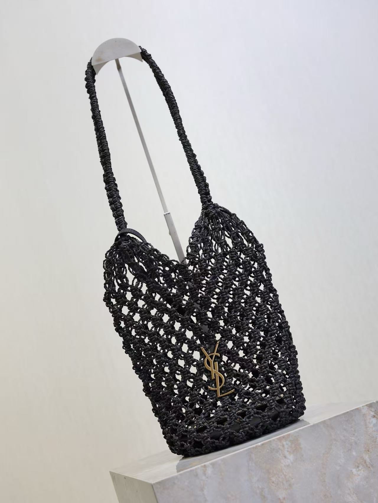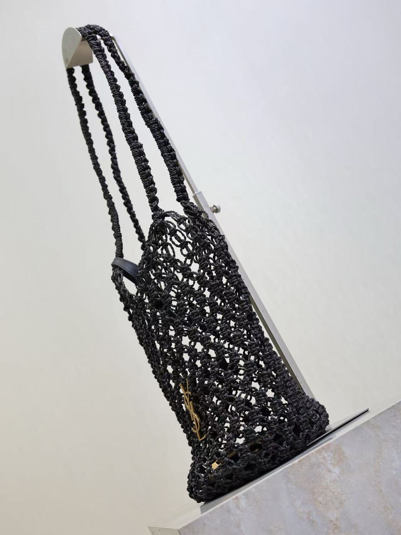 YSL SHOULDER BAG 33 IN BLACK WOVEN RAFFIA