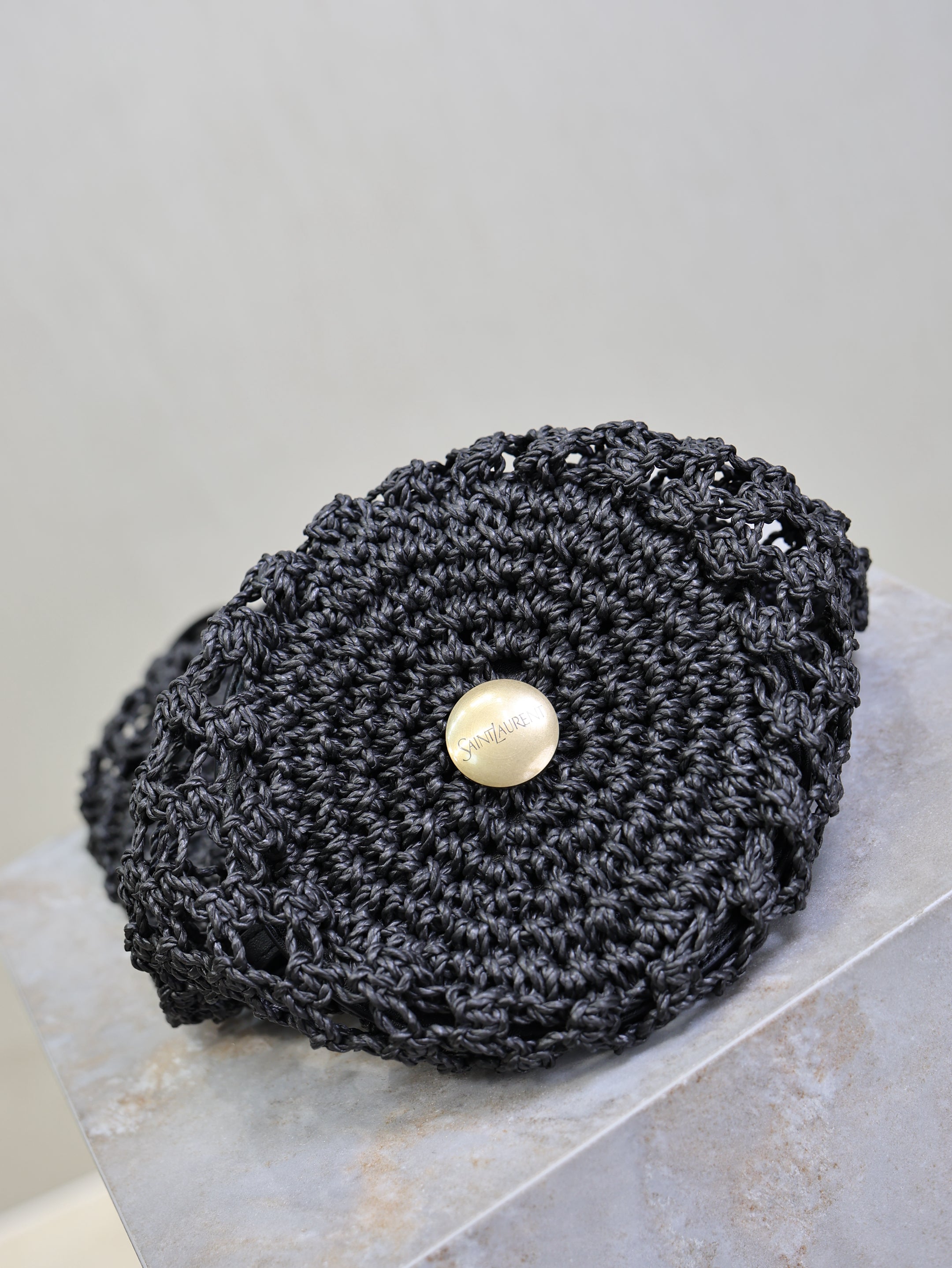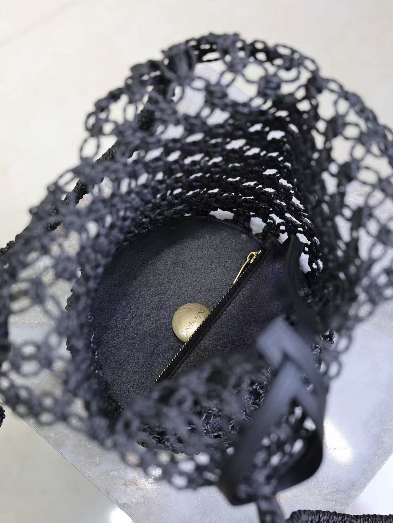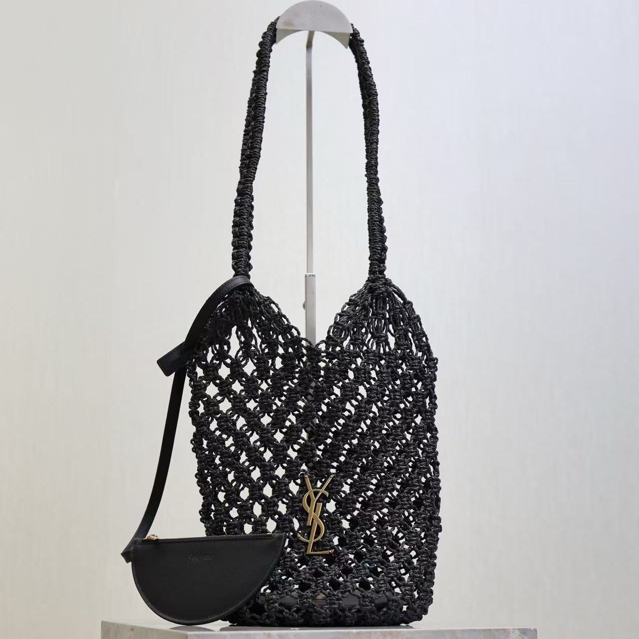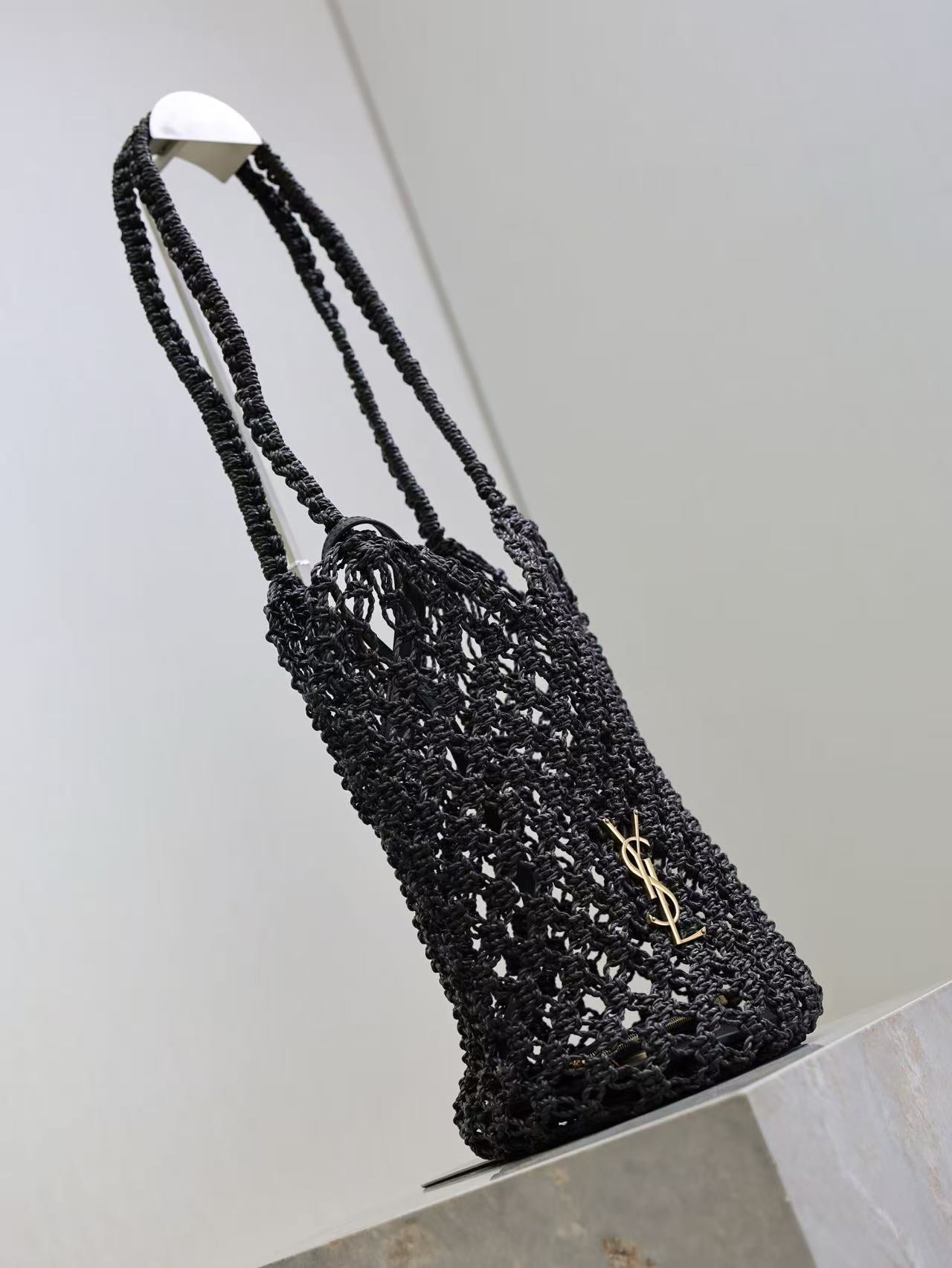 YSL SHOULDER BAG 33 IN BLACK WOVEN RAFFIA
